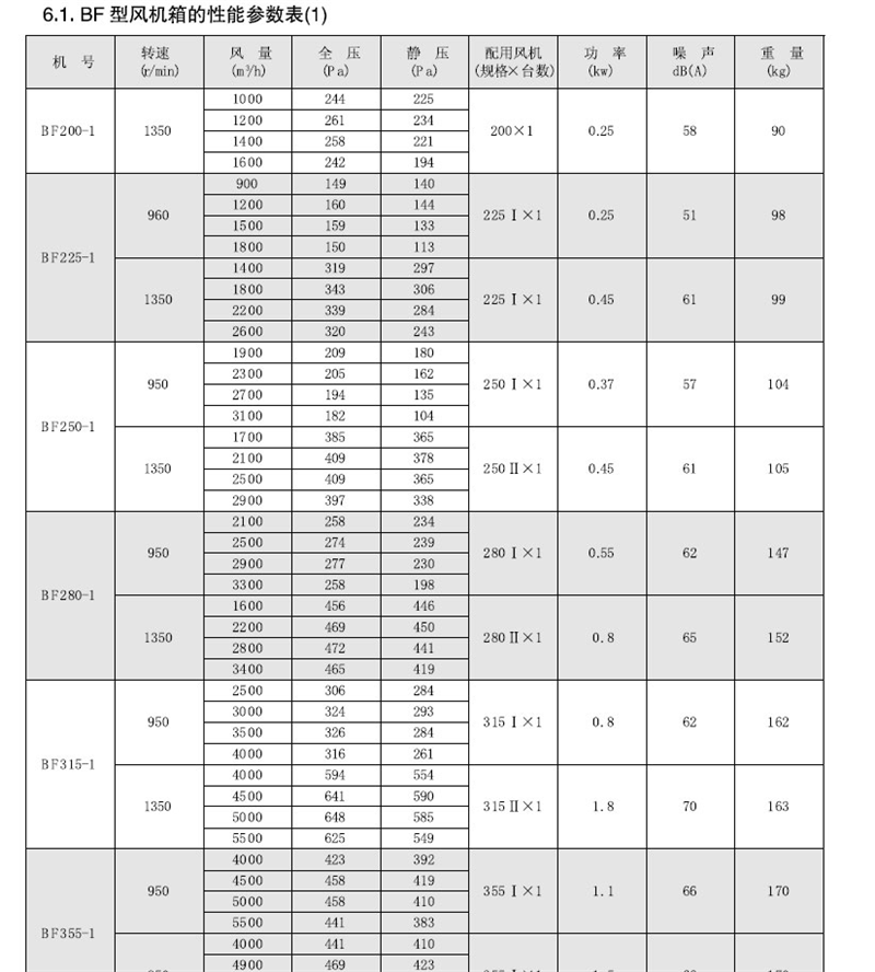 四、BF型風(fēng)機(jī)箱配置