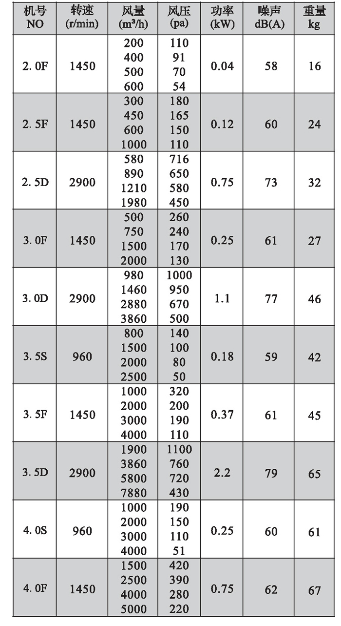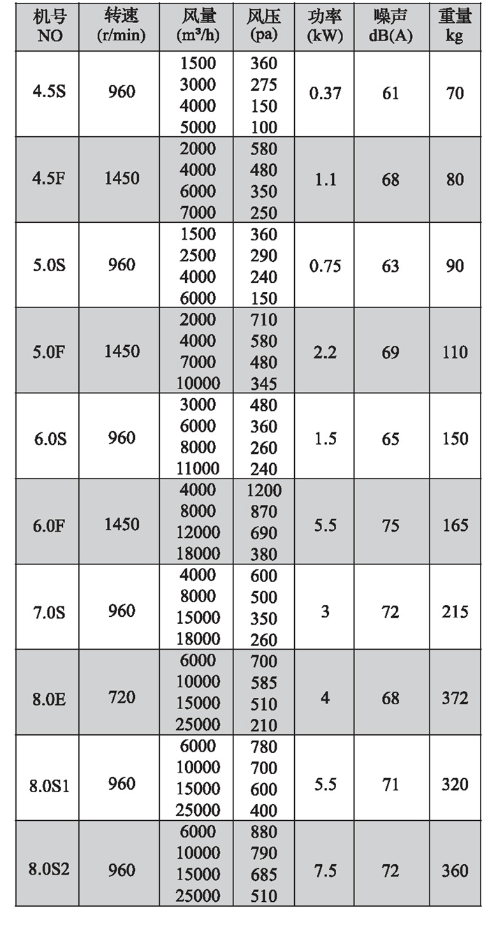 注:雙速風(fēng)機重量參考同號中高速風(fēng)機的重量。