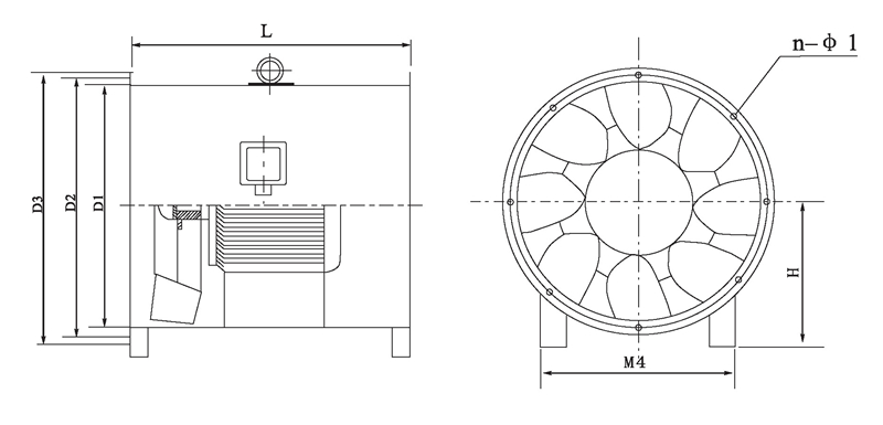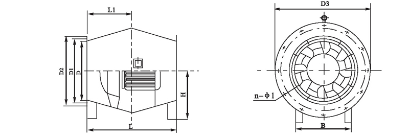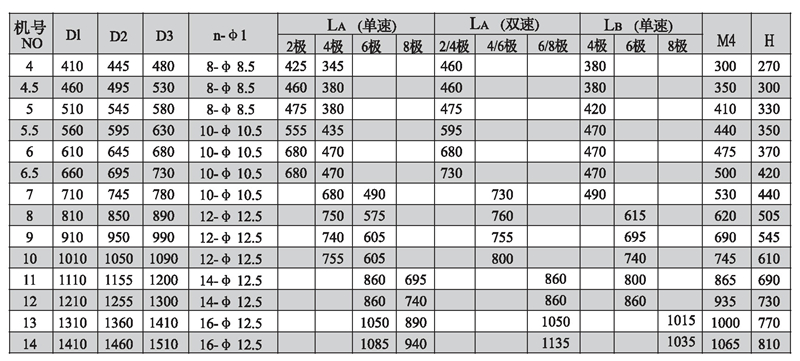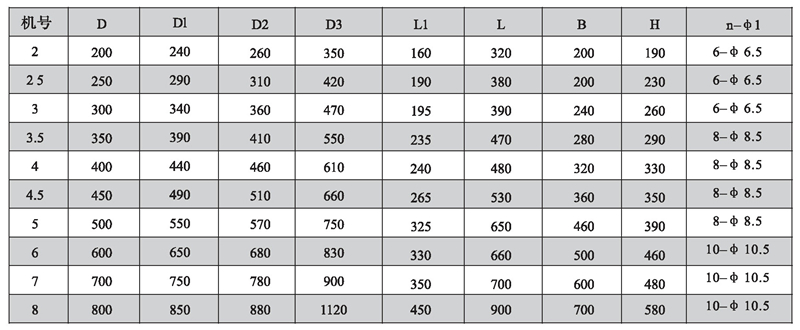 注:風(fēng)機出廠時法蘭一般不打孔。n-φ1僅供參考,若要打孔請用戶在訂貨時說明.